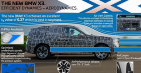 寶馬X3大改款在即!全新前臉大格柵,加長42mm,風阻系數0.27Cd