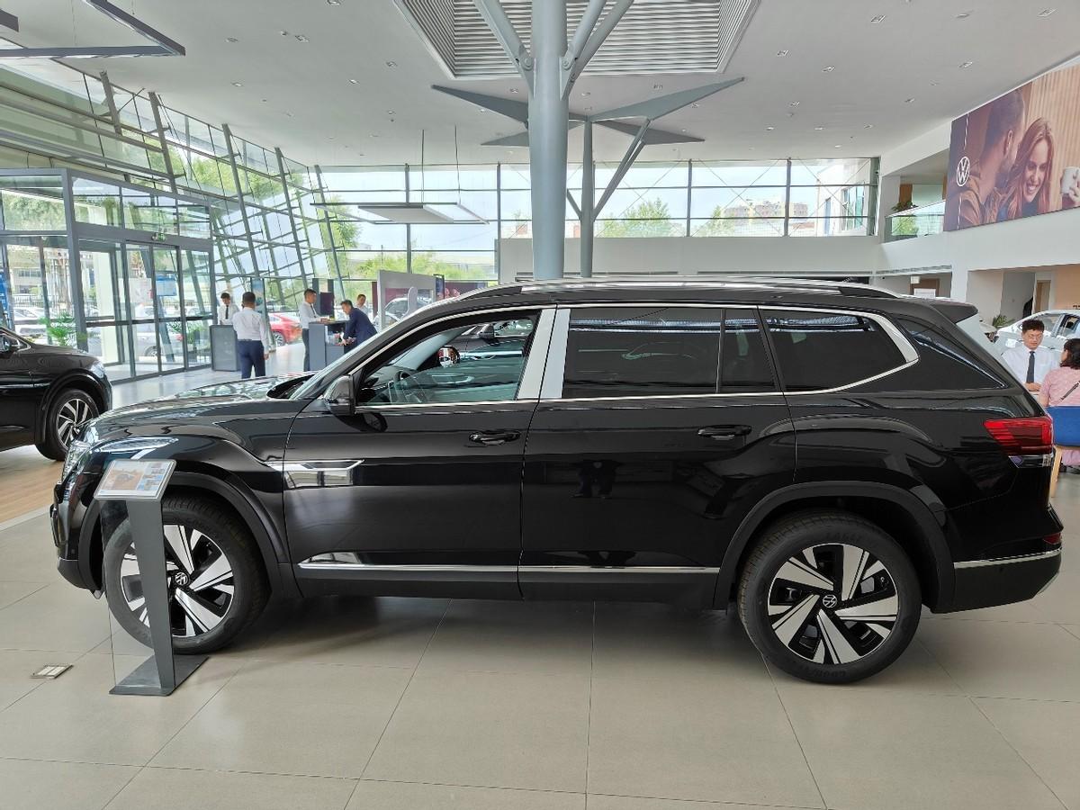 漢蘭達,也可以說是延續了家族式的設計風格。倒梯形的進氣格柵,兩側燈組,線條略顯上揚。虎牙狀的導風槽設計。下包圍熏黑處理降低了視覺重心。車身側面采用了留白式設計;尾燈組熏黑處理,下包圍同樣采用黑色防刮材質包裹。漢蘭達的車身長寬高分別是4965mm、1930mm、1750mm,軸距尺寸2850mm。軸距尺寸比途昂短了13cm。