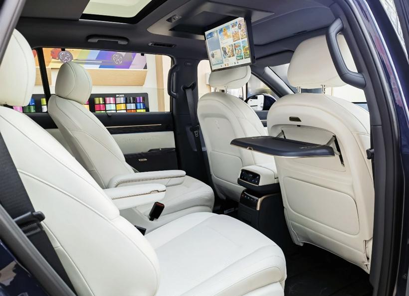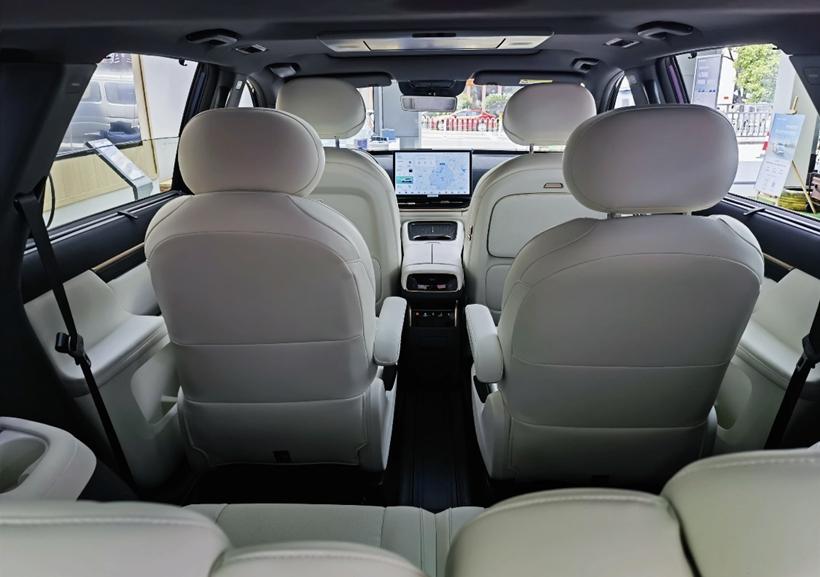 乘用性方面,東風奕派eπ008的長寬高分別為5002/1972/1732mm,軸距為3025mm;單以尺寸編排而言,已經要比零跑C16足足大了一圈。因此,以其六座布局的內部座椅結構來看,空間表現還是比較充裕的。與此同時,新車的第二排座椅還是配備了電動調節、音箱頭枕、電動腰托、通風/加熱/按摩等功能的零重力航空座椅,搭配20揚聲器WANOS全景環繞音效、小桌板、吸頂“彩電”以及前排扶手箱下方可支持前后移動的冷暖冰箱等,至少在豪華格調方面,營造得還是比較到位的。