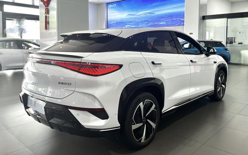 回顧外觀,比亞迪海獅07 EV作為“海洋網”的又一款力作,將延續海洋美學設計理念。而其前臉的俯沖式跑車樣式車頭,搭配完美車身比例的優雅線條,除了能彰顯前衛、時尚的造型特質以外,還將帶來轎跑SUV的靈動感。