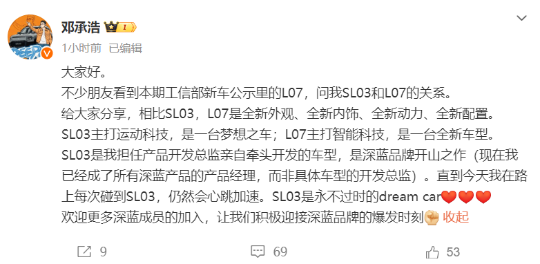 深藍又增新成員,命名深藍L07,提供增程/純電動力,或年內上市