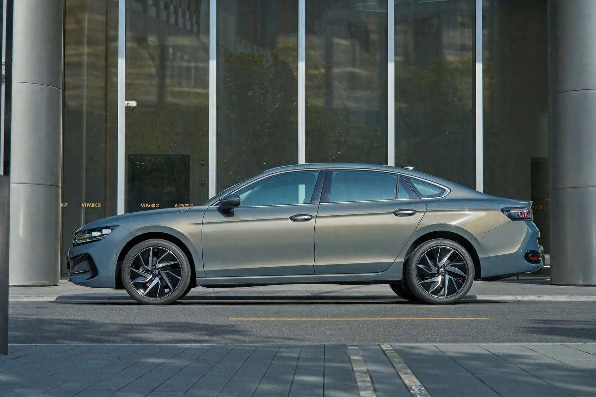 車身側面,全新一代邁騰的氣場更加強大,長寬高4990/1854/1487毫米,與現款長寬高4866/1832/1479毫米相比,可以說是得到了全面提升,但是軸距并無變化,依舊是2871毫米,但也保持著同級空間領先的水準;側面造型保持矯健姿態,硬朗鼻子的線條延續德系血統,19英寸多幅式輪轂運動感十足。