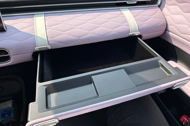 進(jìn)入車內(nèi),我被那高質(zhì)感菱格紋軟包內(nèi)飾所包圍,精致松軟,包覆感強(qiáng)。抽屜式副駕島臺(tái)設(shè)計(jì)更是讓我眼前一亮,抽拉之間秒變化妝臺(tái)和辦公桌,無(wú)論是出行途中還是日常使用,都能滿足我的不同需求。這種設(shè)計(jì)不僅實(shí)用,還充滿了創(chuàng)意,讓我對(duì)東風(fēng)納米01的好感度直線上升。