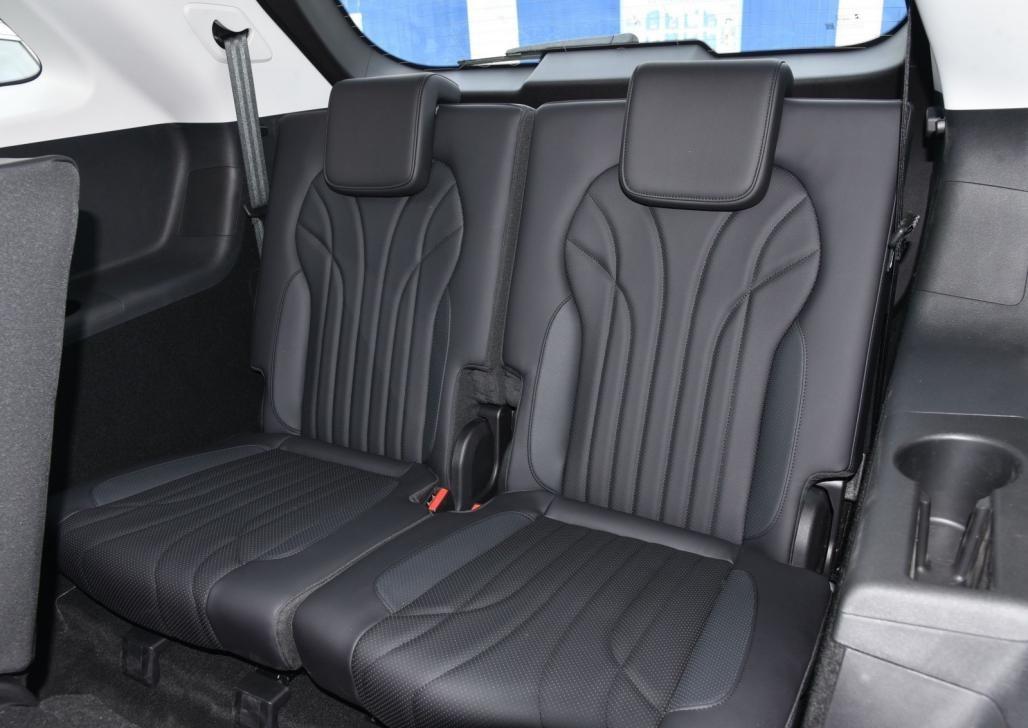 中排座椅坐墊長度充足,靠背支撐性也不錯,坐墊有160mm前后滑動范圍,適應性較高。空間方面,侃弟身高175cm,腿部最多有三拳多,頭頂一拳三指,橫向比較寬闊,乘坐三個大體型男士都沒問題。座椅有便利進出功能,一個動作同步前移和翻起,到后排很便利。配置方面,提供地臺出風口和后排獨立空調,還有老板鍵、中央可翻折扶手、車頂有大尺寸全景天窗帶電動遮陽簾。