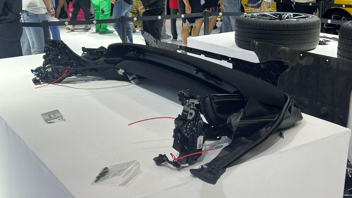 在現(xiàn)場(chǎng),幾名工程師開(kāi)始對(duì)Cyberster進(jìn)行拆解,Cyberster的內(nèi)部構(gòu)造逐漸展現(xiàn)在大家面前??梢钥吹?,車(chē)身結(jié)構(gòu)設(shè)計(jì)得相當(dāng)緊湊,各個(gè)部件之間的銜接也十分精密,敞篷剪刀門(mén)的設(shè)計(jì)確實(shí)很有個(gè)性,不僅外觀時(shí)尚,而且在實(shí)用性方面也做得很出色。
