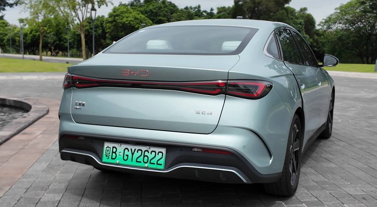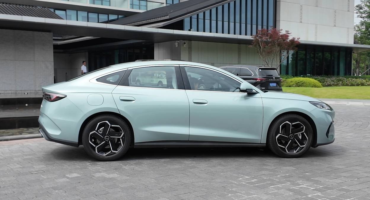 車身尺寸方面,它們的差別不大,長度都是4830mm,高度也同為1495mm,軸距一樣是2790mm。唯一不同的是寬度,秦L是1900mm,海豹06則為1875mm,25mm的差異實際感受不出來,反映到內部空間上區別也不大。如果說前臉的設計互有長短不太好選,那么側面的顏值就不會糾結了,我個人覺得海豹06更加的吸引人。在花瓣輪轂,細長尾燈以及半隱藏式門把手等細節加持下,它看起來精致且動感。而秦L的細節沒有那么高級先不說,車身的線條就沒有海豹06那樣的精瘦感,整體感覺稍顯“膨脹”,像一個大號的秦PLUS了。