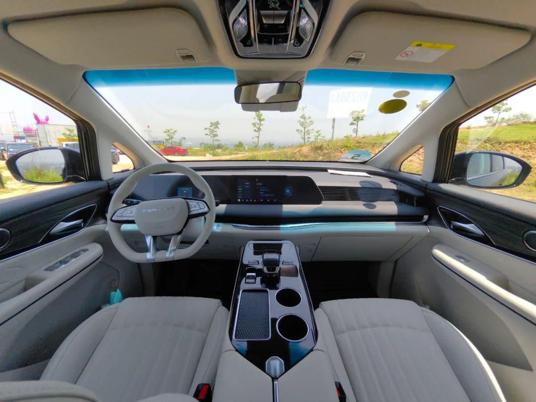 內飾方面,強調科技感,最大的亮點當屬41英寸智能超清三聯屏,集合12.3英寸中控屏、12.3英寸液晶儀表和12.3英寸副駕娛樂屏,內置高通驍龍8155芯片,搭載騰訊TAI 4.0智能車機系統,三幅式方向盤,配備精致檔把,檔把周圍更是有無線充和兩個杯架。座椅方面,帶有座椅記憶、座椅加熱/通風,五種模式的八點位按摩功能,副駕配有8向電動調節。