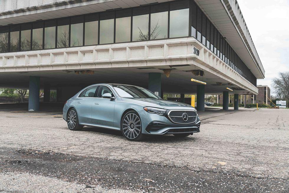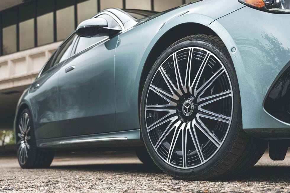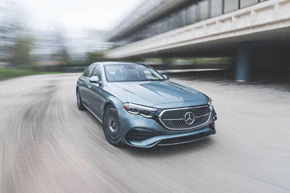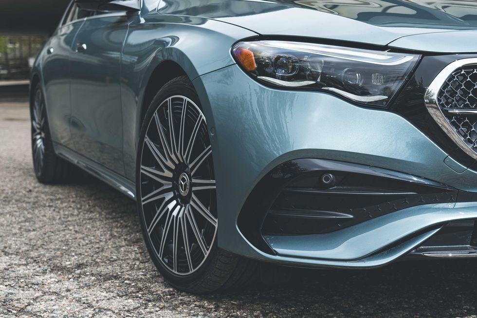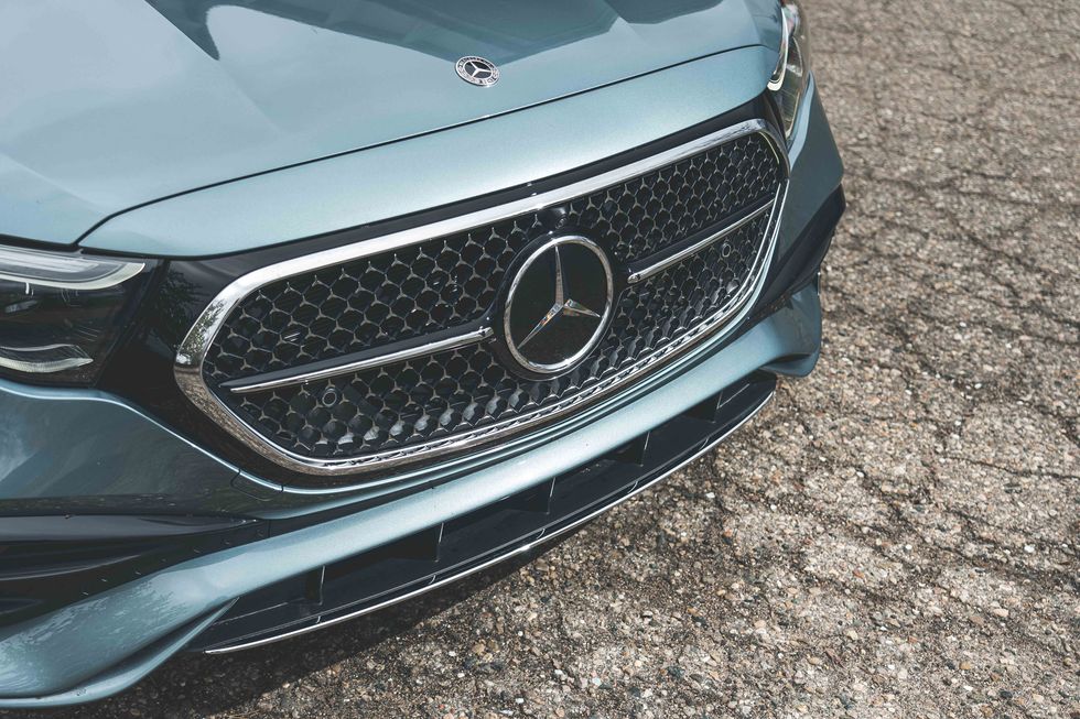 在外觀方面,新車當然主打運動的大標款式,巨大的奔馳車標引出的寬敞式鍍鉻條鑲嵌于滿天星狀中網(wǎng)填充之上,外側加入了雙層裝飾條進行包裹,引出了花生狀的大燈組,前機蓋處還有著額外的車標與之形成對應,前保險杠部分自帶AMG風格套件,雙層式格柵呈三段式鏤空,進一步增強了運動感。在車身側面,標準軸距版本的車身還是相對克制,沒有超過5.0米,比短軸版全新5系要更加緊湊一些,表現(xiàn)了運動的姿態(tài)。