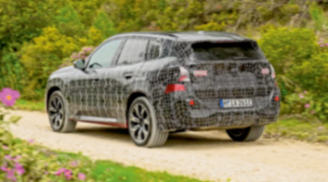 圖中展示了車頭和部分車側(cè)的造型,應(yīng)該說(shuō)越來(lái)越的抽象,這似乎也是寶馬整體的風(fēng)格,不知道消費(fèi)者能否接受。具體來(lái)看前臉部分有著方正的造型,多少帶了一次復(fù)古風(fēng),而雙腎格柵采用了雙獨(dú)立造型,真正的完全不相連,中央由車身同色裝飾進(jìn)行分割,而雙腎自己則有著獨(dú)特的豎斜兩段式中網(wǎng)填充,這在此前的剛剛發(fā)布的新全新1系上已經(jīng)有曝光,不過(guò)本次X3上更加類似于封死的面板造型,不承擔(dān)進(jìn)氣的任務(wù),外圈有著可點(diǎn)亮的LED燈帶包裹。而左右兩側(cè)則是獨(dú)特的大燈組,尺寸小巧近似倒梯形,內(nèi)部有著雙彎折式進(jìn)行帶和熏黑的遠(yuǎn)近光燈。