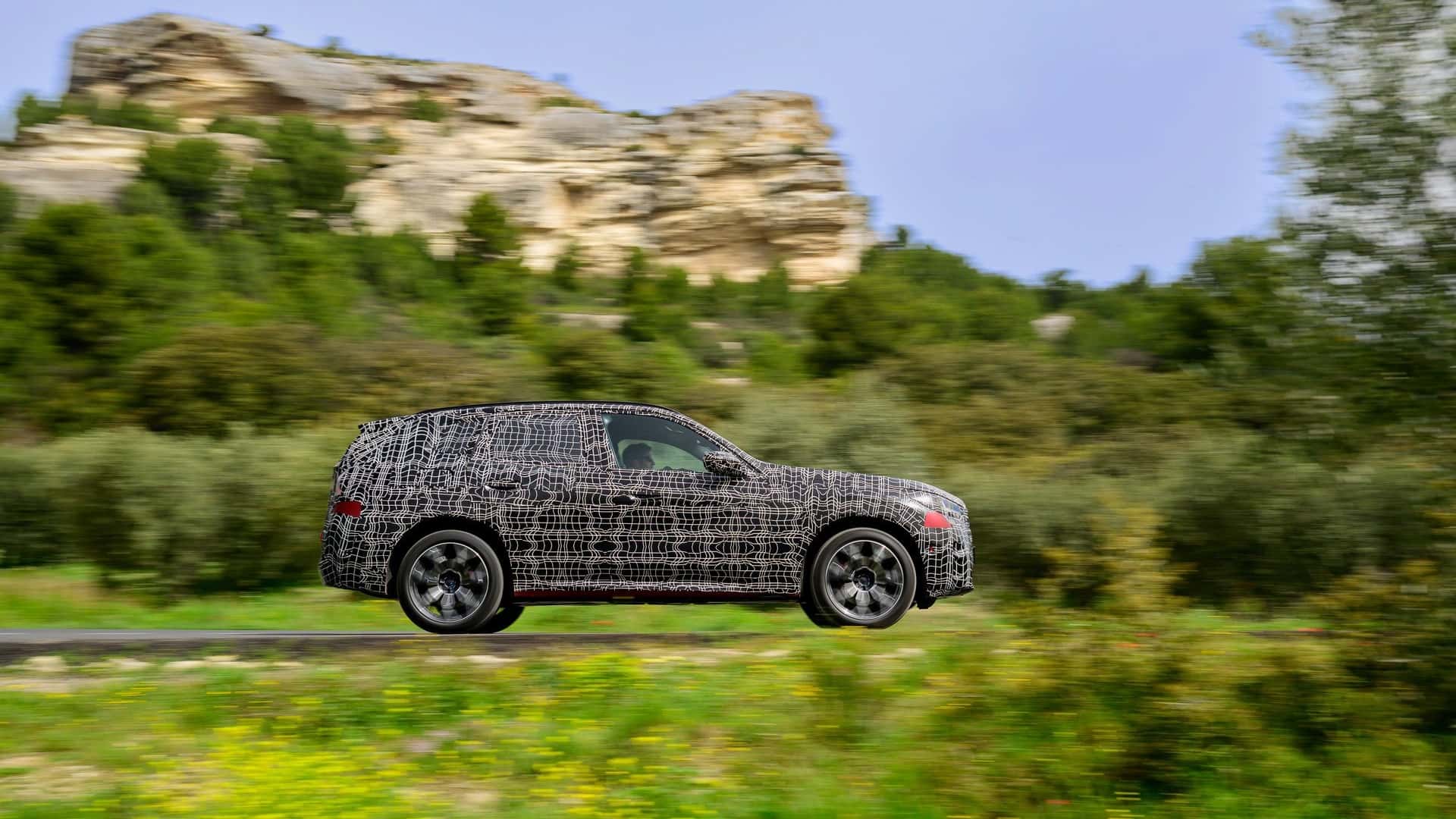 前保險(xiǎn)杠部分則有著大面積封死狀態(tài),扁平的下格柵同樣是左右兩段,并加入了獨(dú)特的鍍鉻條進(jìn)行包裹,霧燈區(qū)域還有縱向的車輪進(jìn)氣道,提升了運(yùn)動(dòng)感。在車側(cè)面,A柱下方有著充電接口,可能是iX3也有可能是插電混動(dòng)版本,還有待進(jìn)一步確認(rèn),畢竟沒(méi)有車尾的圖片,除此之外,也采用了相對(duì)獨(dú)特的車側(cè)線條,腰線相當(dāng)簡(jiǎn)潔,輪拱呈特殊造型突出,車頂略帶下墜并安裝了行李架,D柱處還有著特殊的拐角設(shè)計(jì),后輪略帶寬體效果,側(cè)裙加入了特殊的黑色裝飾整體符合寶馬最新的家族設(shè)計(jì)。