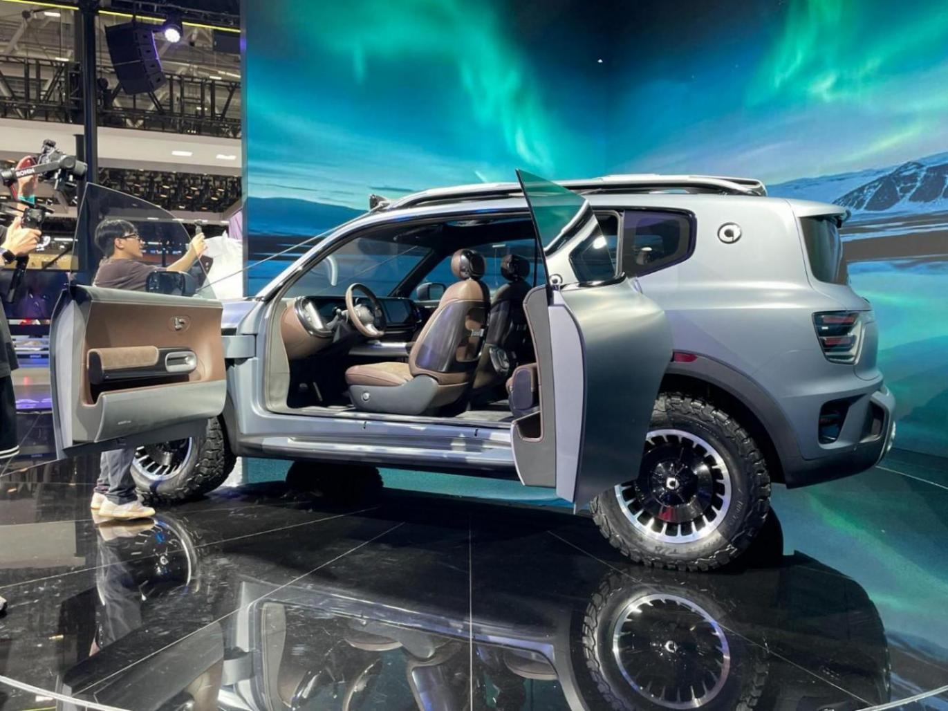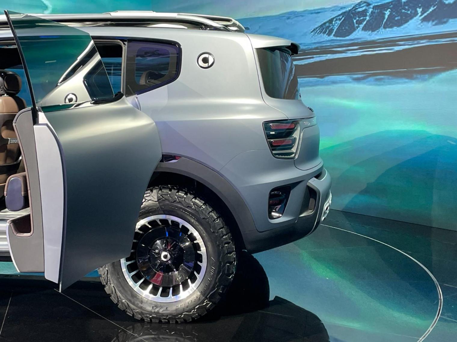 在車身側面標準的方盒造型也是相對修長的設計,尺寸達到了Smart品牌的新高度,空間方面有著出色的表現。當然對開門之類的元素肯定是概念車的設計,但強調內部乘坐性的表現應該是未來的一大賣點。大尺寸輪轂采用了AT胎車頂,厚實的行李架沒有缺席,D柱處加入了Smart車標彰顯了車型的身份。在車尾部分同樣是標準的方盒造型,車頂有著小尺寸擾流板,后風擋弧面突出尾燈與大燈對應,貫穿式結構左右有兩側加入了雙層輻條式紅色燈組,增強了辨識度和設計感。