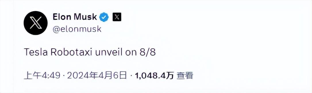 馬斯克表示:將于8月8日發(fā)布特斯拉無人駕駛出租車Robotaxi,而選擇這個日子的原因是因為8在中國被視為吉祥數(shù)字。