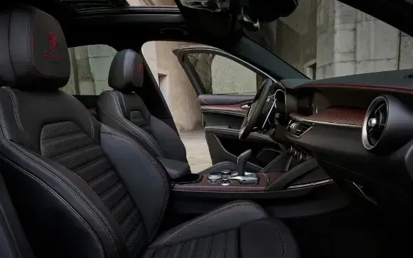 比如全新的Alfa Romeo Stelvio Quadrifoglio Super Sport通體采用了黑色打造,不論是車頂、還是后視鏡等部分均使用了碳纖維材質。