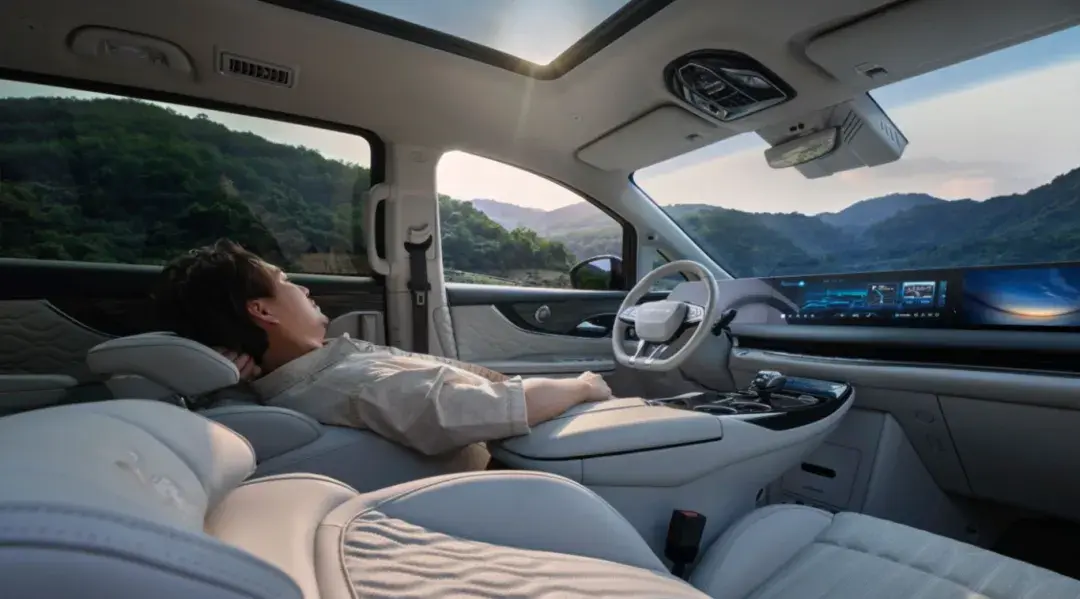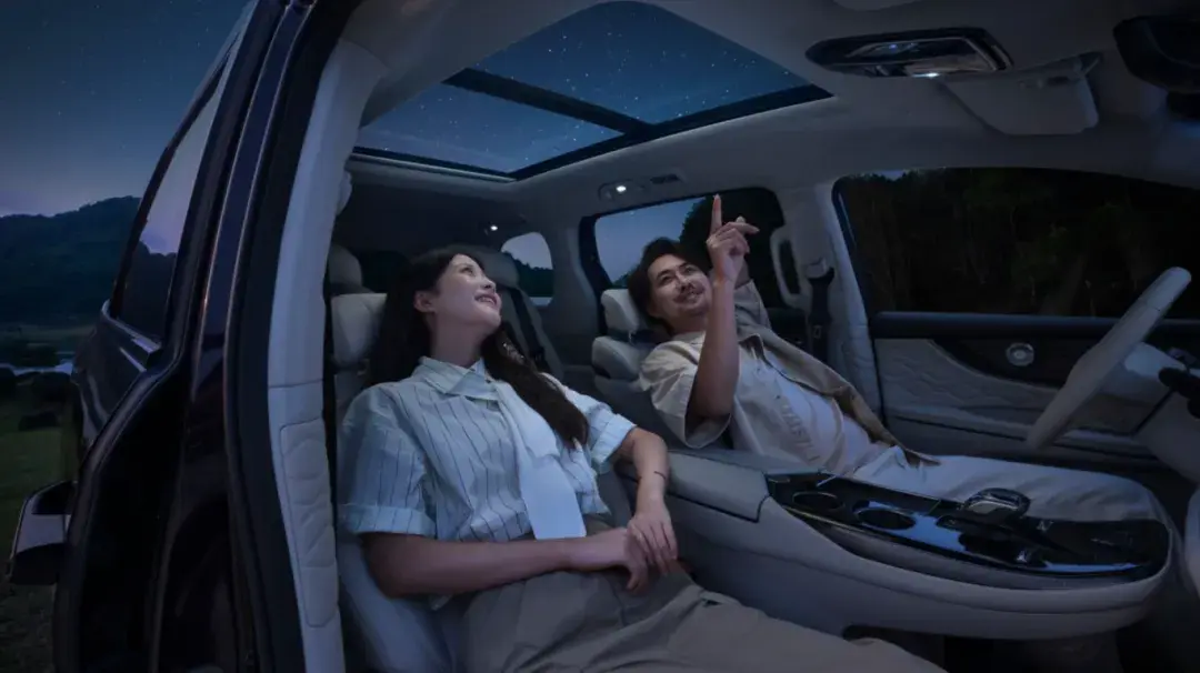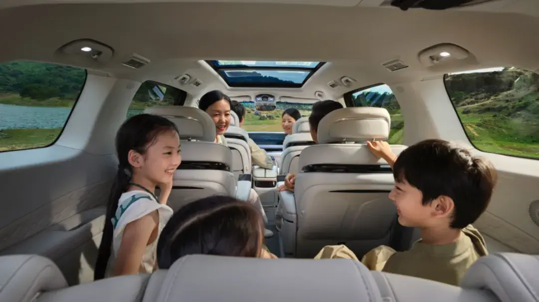 座椅的部分采用了常見的2+2+3布局,第二排兩個(gè)獨(dú)立的座椅配置十分豐富,高配車型配備有12向座椅調(diào)節(jié)、通風(fēng)加熱按摩、扶手智慧屏、后排小桌板以及前后左右四向滑動(dòng)。第三排的座椅支持分體放倒,并且可向后翻折到底板下方,形成一個(gè)更規(guī)整的空間,這也是追求實(shí)用性MPV比較常見的設(shè)計(jì),后備廂空間為593L,將后排座椅放倒后可拓展至2792L。