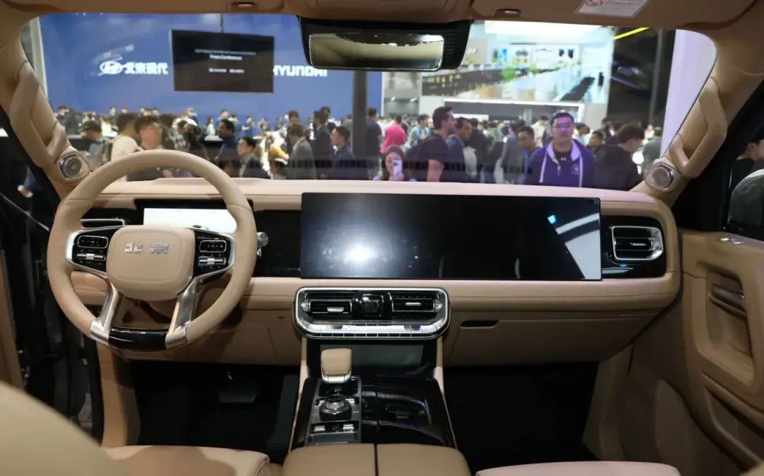 內飾方面,可以看出BJ60e展現出不錯的科技感,新車配備有全液晶儀表,但最吸睛的還是,由中控觸控大屏和副駕駛娛樂屏所組成的雙聯屏設計。同時中控臺下方還保留傳統物理按鈕,以便快速控制空調系統。同時在中央通道上看到電子檔把周邊也保留有傳統按鈕及旋鈕,其主要針對關于越野方面的按鈕。