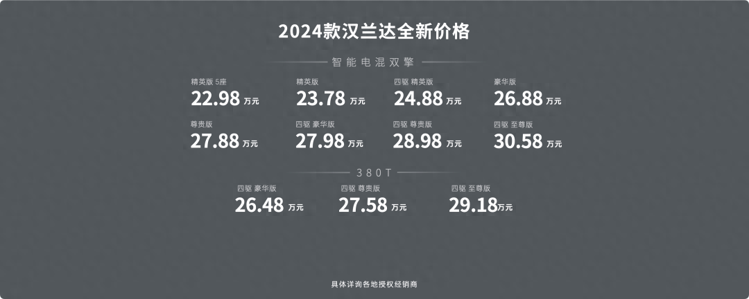 近日,廣汽豐田2024款漢蘭達(dá)正式上市,新車指導(dǎo)價(jià)24.98-32.58萬元,雙擎車型全系最高降價(jià)4.3萬元,包含建議零售價(jià)下調(diào)2.3萬元,官方APP權(quán)益2萬元,起售價(jià)低至22.98萬元;燃油版車型全系最高降價(jià)5.3萬元,包含建議零售價(jià)下調(diào)3.3萬元,官方APP權(quán)益2萬元,起售價(jià)低至26.48萬元。