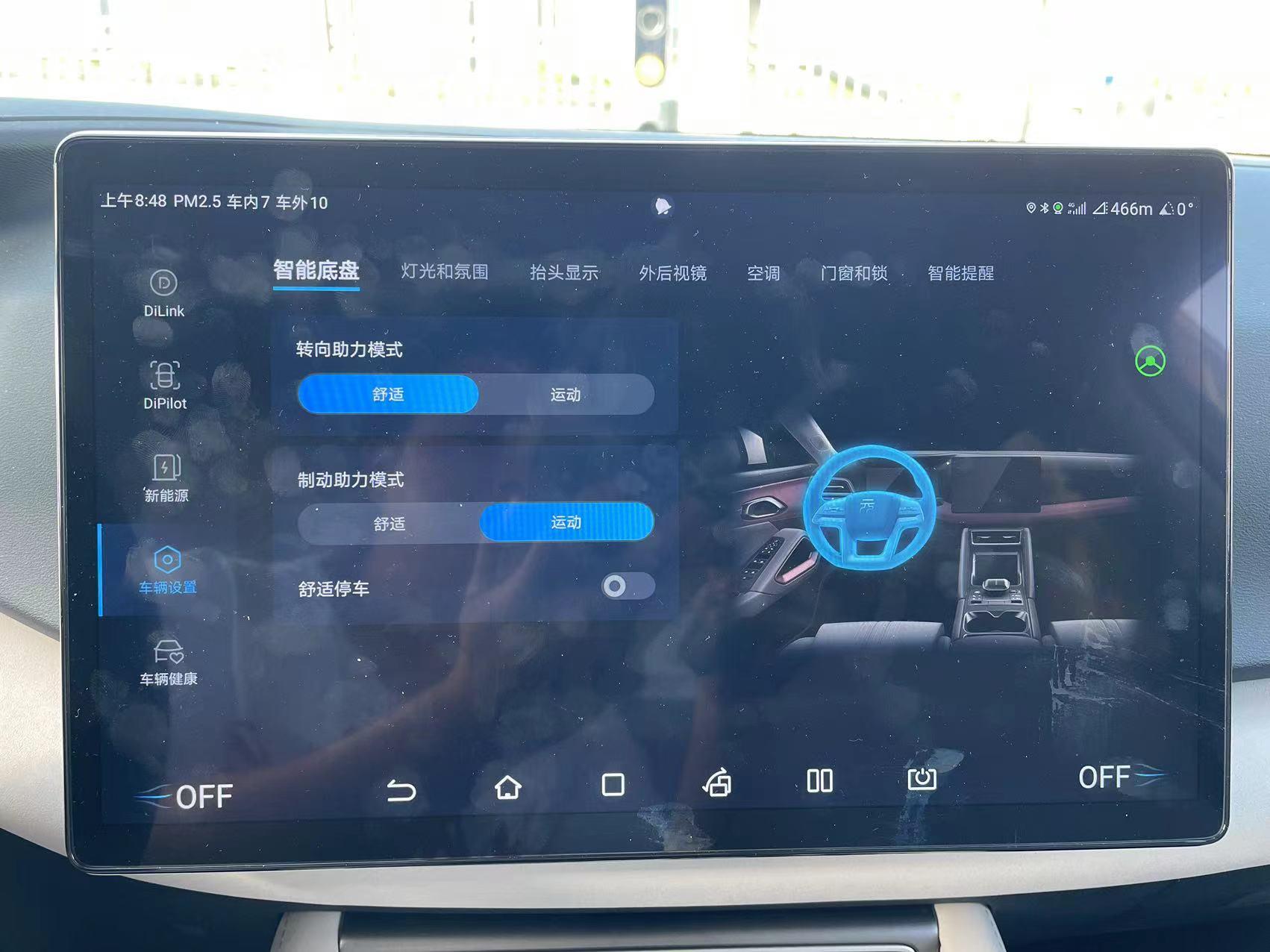 此車的轉向分了2種模式,舒適和運動。當轉向模式為舒適時,整體低速區(qū)的轉向手力是比較輕的,現(xiàn)在這種做法比較普遍,主打一個輕便,隨著車速增加力矩慢慢增加。