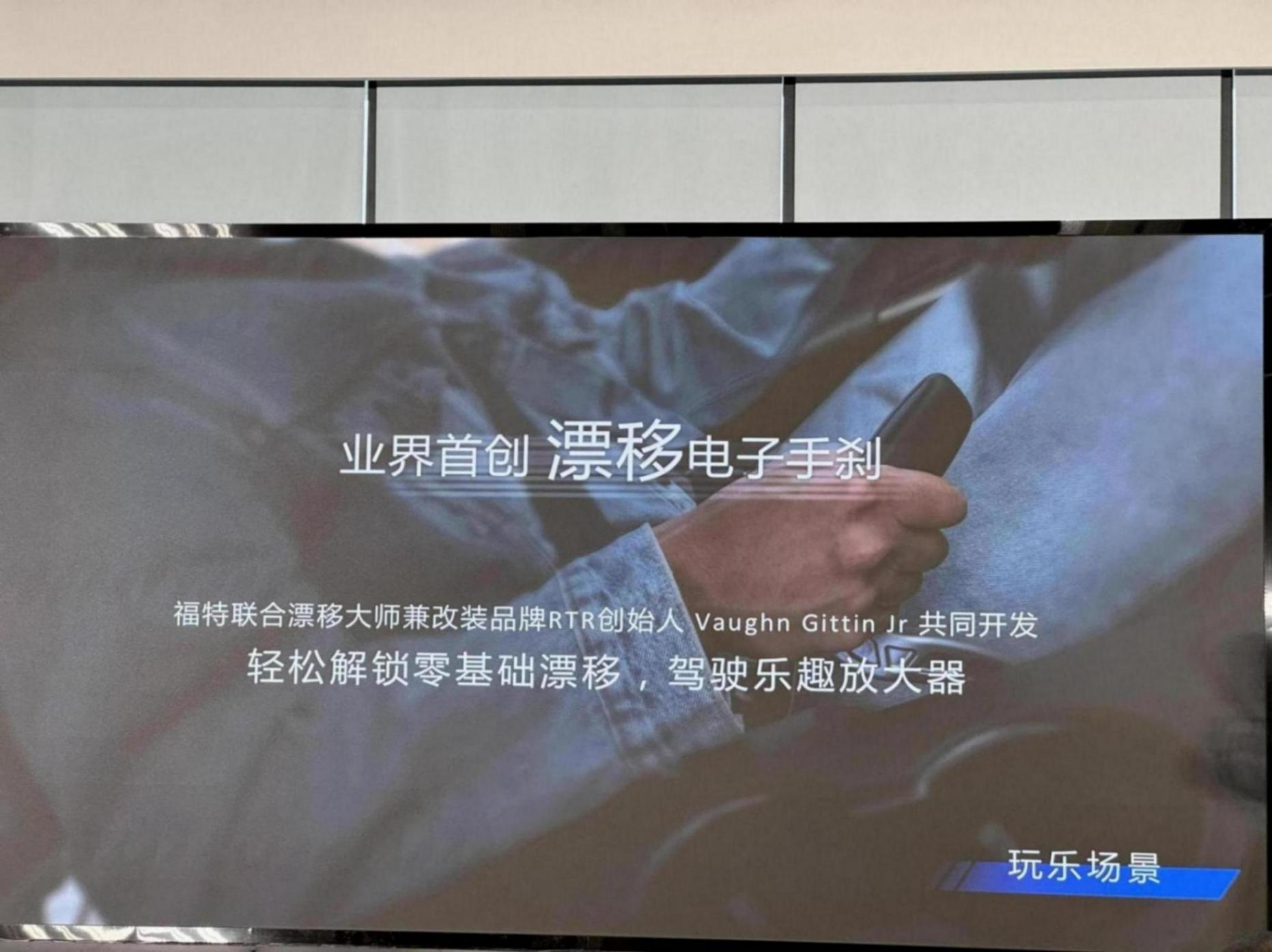 說一下這個電子漂移手剎。這其實是福特的首創,相當于做了一個機械手剎的樣子,但實際上是電子控制,只是沒有限位器,拉起來就是拉緊剎車、松了手柄就打開制動器。因此在漂移入庫的時候需要一直拉著,如果只拉一下就放回去,車就會推出去。