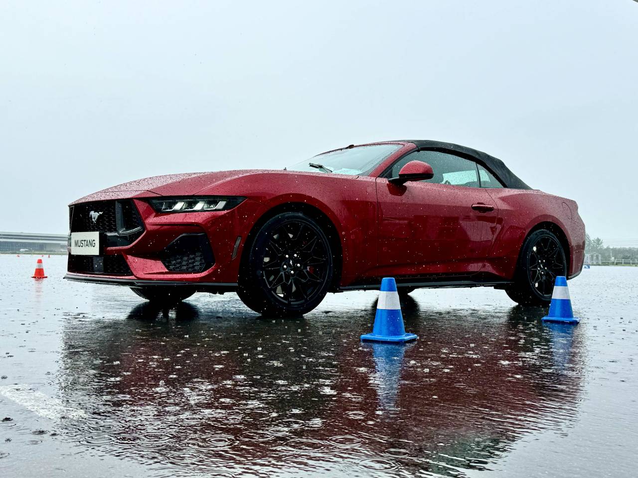 說完了全新一代Mustang的賣點,該說說新車的駕駛感受了。然而這篇文章的試駕部分充滿了“注水”的內容,原因是試駕當天恰好遇到南京暴雨,大量的試駕環節都只能放低要求,大馬力后驅在大雨中稍一用力——就漂起來了。