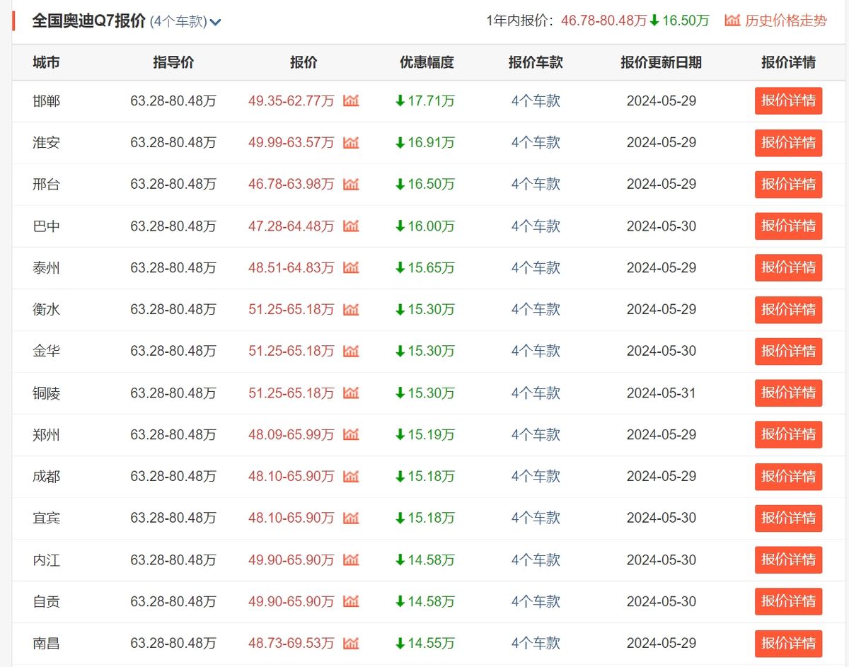 也就是說,只要寶馬X5銷量繼續下滑,就有進一步降價的可能性。與此同時,國產寶馬X5最直接的競爭對手奧迪Q7和奔馳GLE現在的降幅同樣不小,特別是奧迪Q7,雖然現在是進口的身份,但降價之后賣得比國產寶馬X5還要更便宜,國產寶馬X5已經沒有了在價格上的優勢。