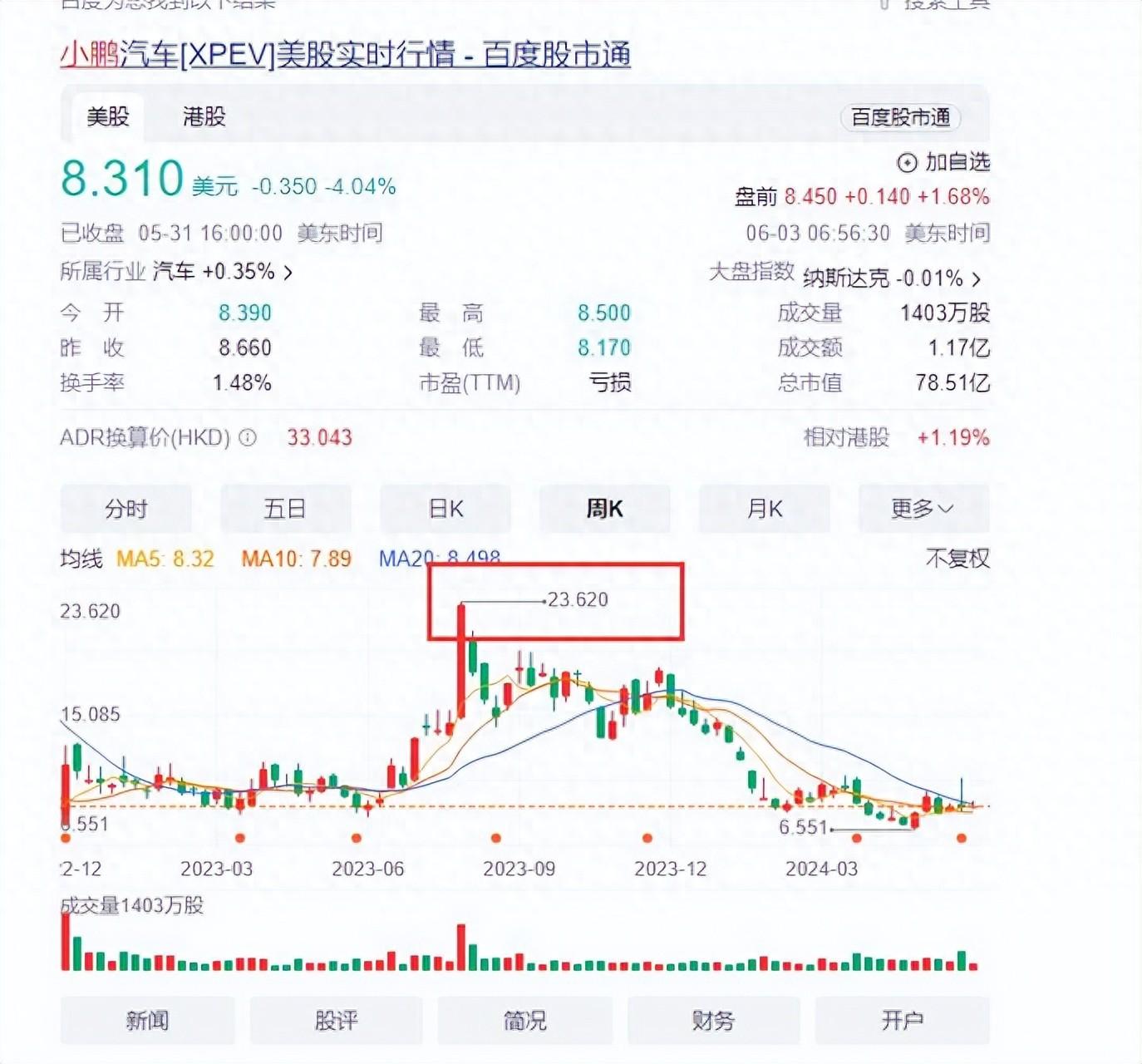 更要命的是小鵬的股價(jià),截至到目前,小鵬的股價(jià)已經(jīng)跌到只剩下了8.3美元了,要知道,就在去年7月份時(shí),小鵬的股價(jià)最高點(diǎn)一路給干到了23.62,美元,如今只剩下巔峰期的三成,足以說明小鵬現(xiàn)在的日子有多慘了,如果按照現(xiàn)在的發(fā)展態(tài)勢(shì)來看小鵬,估計(jì)到未來,小鵬的股價(jià)還得一瀉千里,爹媽不認(rèn)真的不是開玩笑那么簡(jiǎn)單的。