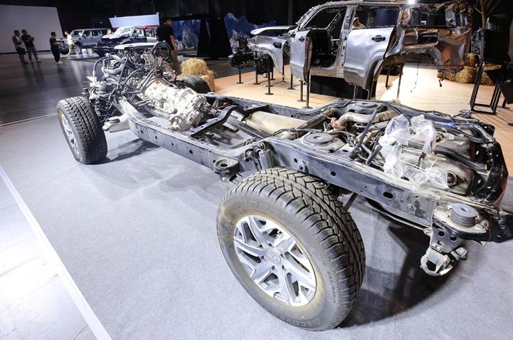 而能夠做到這一點,首先得力于全新BJ40刀鋒英雄版采用了帶大梁的非承載式車身,抗沖擊、抗顛簸能力強,搭配雙防護底盤護板,對車輛內部發動機、變速箱、分動器等設備起到強有力的保護。