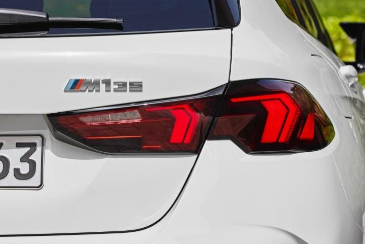 車尾部分,大改款 1 Series 后擋下方維持類似小鴨尾的車身線條,下方換上與新世代 X2 相近設計語匯的立體 LED 尾燈組,車色涂裝提供除了基本金屬漆、BMW Individual 烤漆與客制化選擇外,另外可首度選擇對比色車漆涂裝,外觀除了標準 Base 風格之外,也提供強調運動化氛圍的 M Sport 套件,至于 M135 xDrive 則擁有專屬的 M 水箱罩、19 吋鍛造雙色鋁圈及雙邊雙出排氣尾管配置。