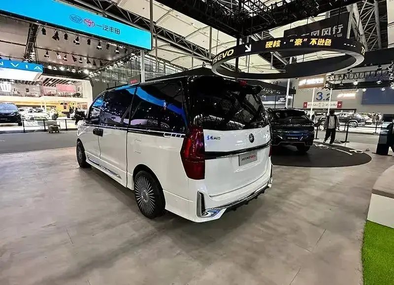 首先從車身的外觀出發,采用了黑白雙色車身,整體的商務氣場非常濃重,整個前臉方面更是如此,整體的視覺沖擊力很強,豪華感很突出,并且采用了類似于奔馳邁巴赫的多輻式鍍鉻裝飾輪轂。每一個細節都彰顯出了商務感豪華感和高級感相比,豐田塞納還要更加具有氣勢。