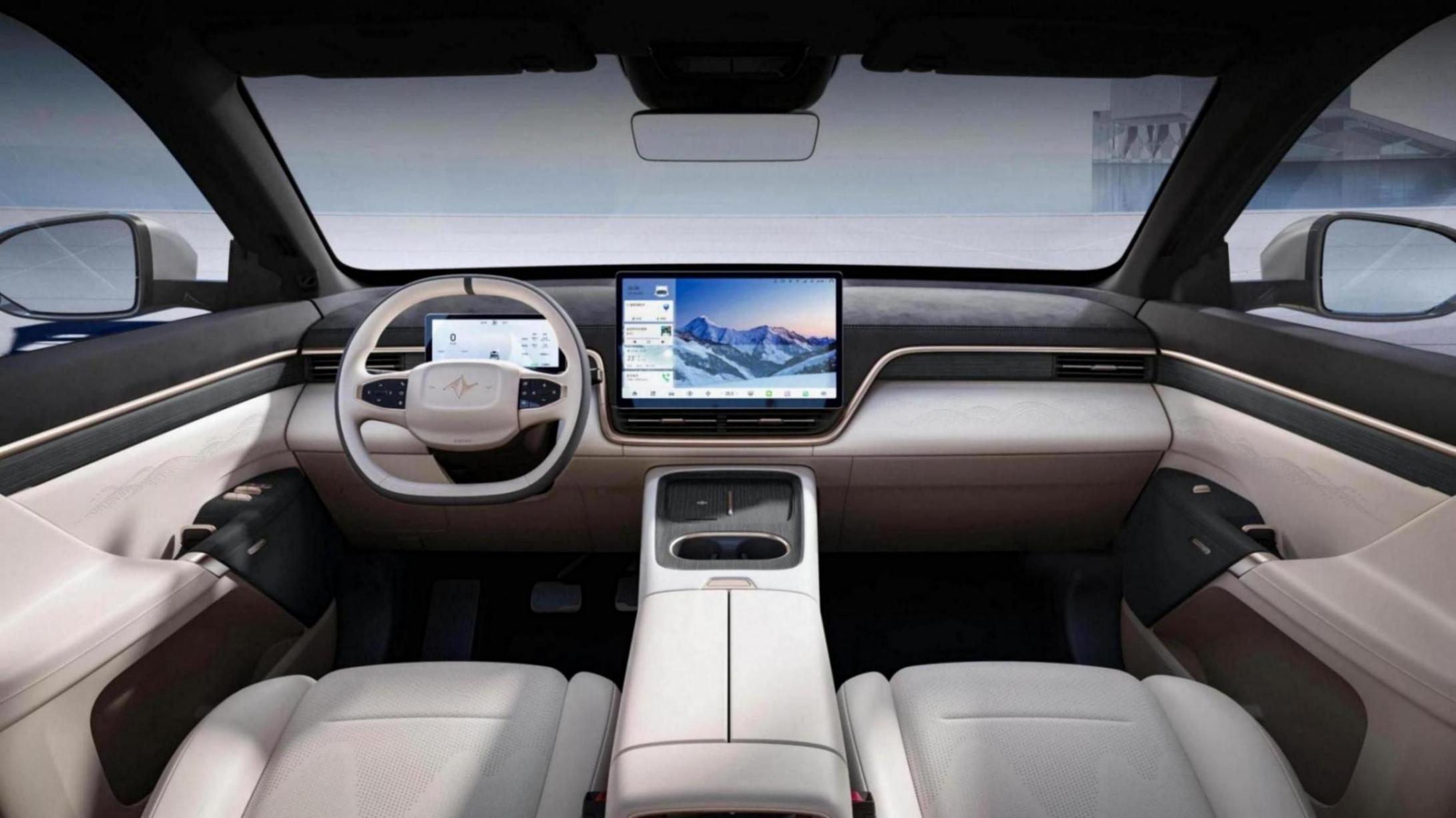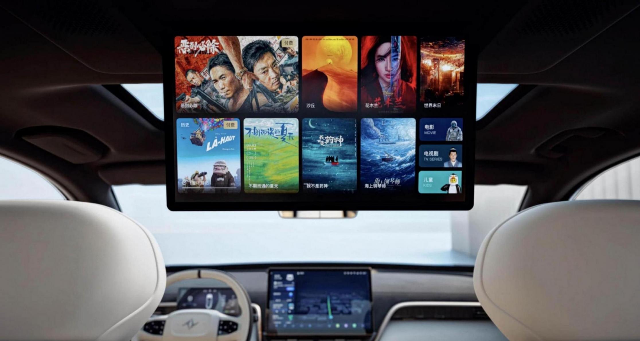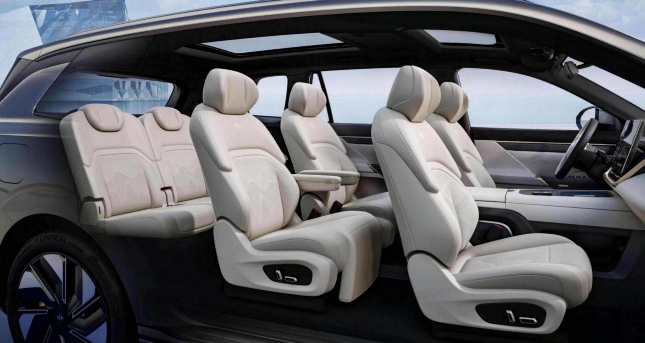 新車內部由于采用了大量皮質和有機硅膠軟包的包覆,因此即使是新車,坐進去也不會聞到異味,有娃家庭可以放心乘坐。另外,車身內部除了在臺面帶有15.6英寸的中控屏幕之外,還在第二排頭頂帶有一塊同尺寸的可收放屏幕,加上全車標配的20個揚聲器,讓前后乘客均擁有不錯的娛樂體驗。