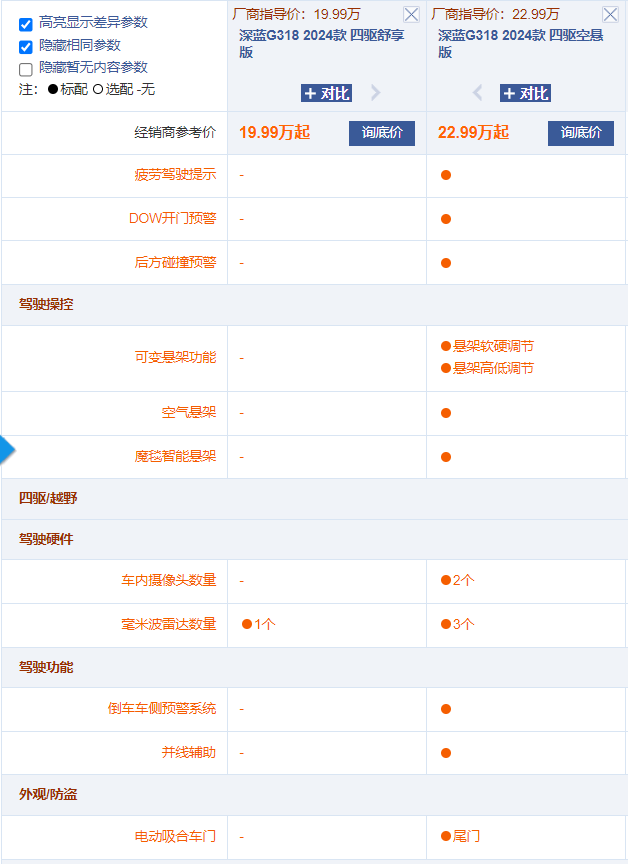這樣看來,如果只看兩款四驅版車型,其實頂配配置更豐富。再結合上價格:四驅舒享版19.99萬與四驅空懸版22.99萬元來看,相差三萬元,其實舒享版的配置也不錯了。