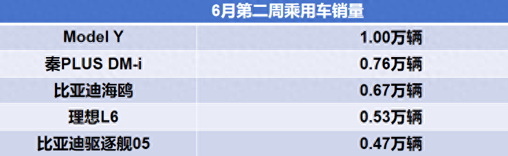6月第二周乘用車銷量出爐。