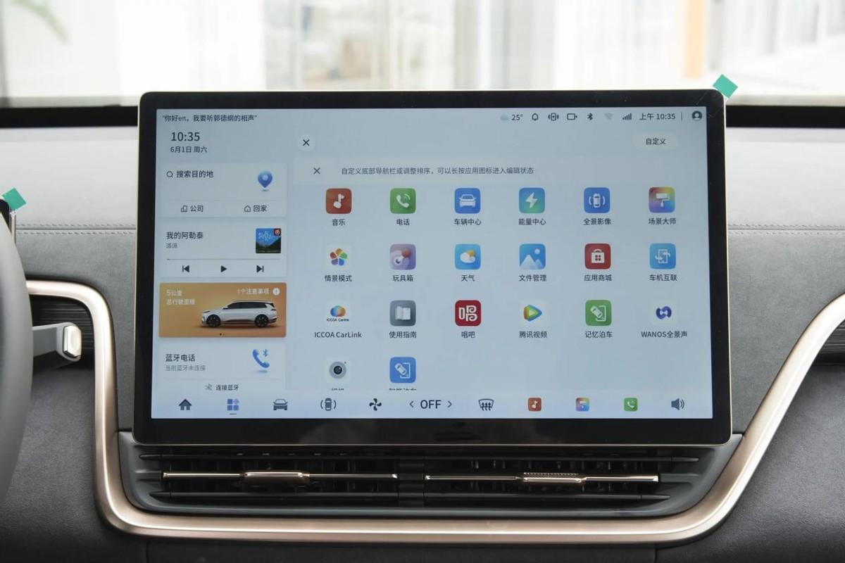 方向盤為雙輻式設計,下方是全液晶儀表盤,搭配15.6英寸的懸浮式中控屏之后,車內的科技效果很強。車機的UI設計和流暢度表現(xiàn)都不錯,使用了高通驍龍8155芯片,操作起來很絲滑,功能也足夠豐富,導航以及各種多媒體app都有配備。此外車機語音識別控制功能表現(xiàn)也不錯,我分別使用四川話和普通話發(fā)出語音指令,系統(tǒng)都可以準確識別并執(zhí)行,使用體驗還不錯。