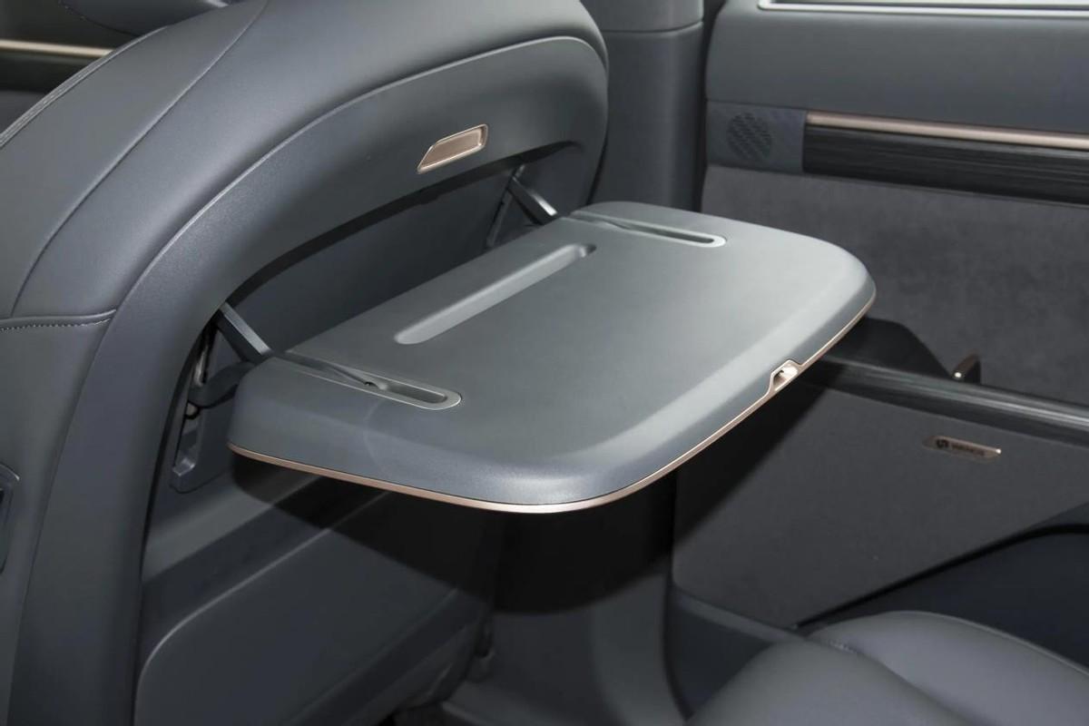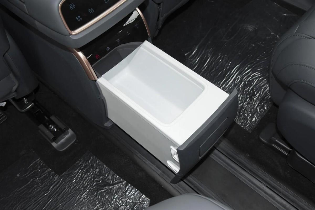 同時東風奕派eπ008在二排右側還配備了小桌板和腿托,家里有老人,或者是小孩子乘坐,能夠放置隨后的手機、玩具等,會更方便。此外第二排還配備有伸縮的冷暖兩用冰箱,溫度降在5-50℃之間,并且支持語音控制、觸控和遠程控制,夏季喝冷飲、冬季喝熱飲都會更便利。