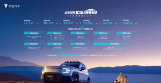 目前,G318已正式上市,價(jià)格區(qū)間為17.59萬(wàn)元至22.99萬(wàn)元。最貴的無(wú)憂穿越版售價(jià)高達(dá)31.8萬(wàn)元,但仍在開(kāi)發(fā)中??偟膩?lái)說(shuō),G318的競(jìng)爭(zhēng)力非常強(qiáng),特別是在新能源越野車市場(chǎng)中,它是一款頗具創(chuàng)新性的新能源越野車,具有引人注目的市場(chǎng)定位。