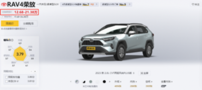當然了,降價才是必殺技,一汽豐田RAV4榮放官網(wǎng)指導價為17.68-26.38萬,現(xiàn)在經(jīng)銷商報價能到12.68萬起售,作為一款豐田緊湊型SUV,提供了2.0L自然吸氣發(fā)動機、2.5L油電混合動力。全系標配了L2級的智能駕駛輔助。這價格和配置放在五年前都是不敢想的。