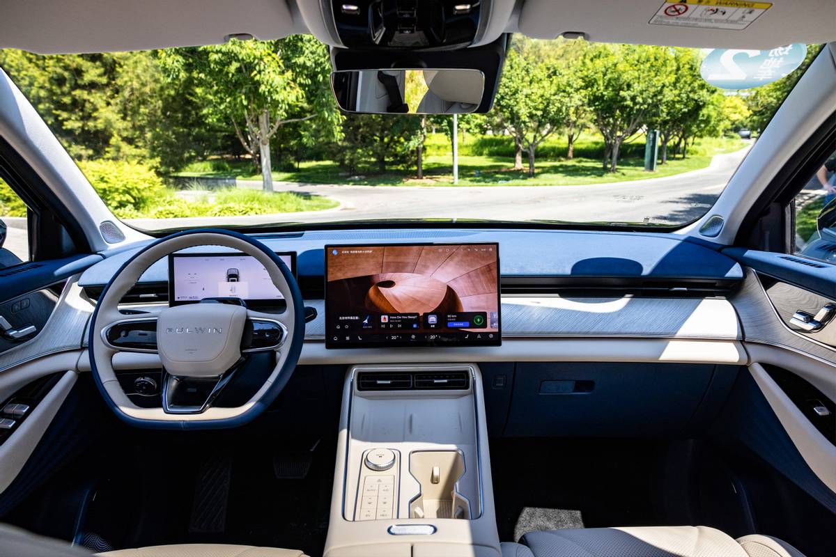 本次我們拿到的是奇瑞風云T9 旗艦車型,也是目前在售的頂配車型。風云T9的設計既延續了奇瑞瑞虎家族的設計風格,又融入了東方美學的意境,展現出更加精致、優雅的視覺效果。車頭的“聽風吟”律動格柵散發著獨特的氣息,讓人仿佛能夠聽到清風細語;車身的“飛檐”腰線優雅流暢,展現出優美的曲線美感;而尾部貫穿式“廊橋”尾燈則給整車增添了一抹科技感。此外,20英寸星云輪轂的設計更是點睛之筆,使整體造型更具動感和現代氣息。在細節之處不斷突破創新,風云T9將奇瑞的設計理念發揮到了極致,展現出獨特的品牌魅力。風云T9這套簡約卻不失華麗的設計手法讓我著迷。