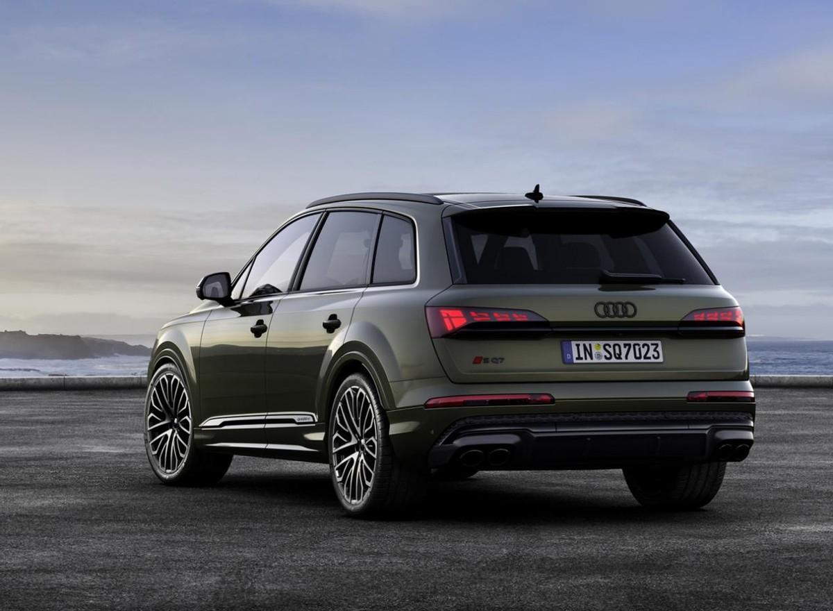 外觀方面,新款奧迪 SQ7 與新款奧迪 Q7 一致,使用輪廓更粗壯的八邊形進氣格柵,中網及下包圍兩側均帶有大孔徑黑色蜂窩狀結構。頭燈組內部結構調整,LED 日間行車燈移到上方位置,支持四種燈光簽名樣式變換,還提供帶有激光大燈的高清矩陣式 LED 頭燈選裝。新款奧迪 SQ7 采用全新的數字 OLED 尾燈組,支持四種個性化燈光簽名變化以及接近指示功能,繼續配備雙邊共四出式排氣尾管。