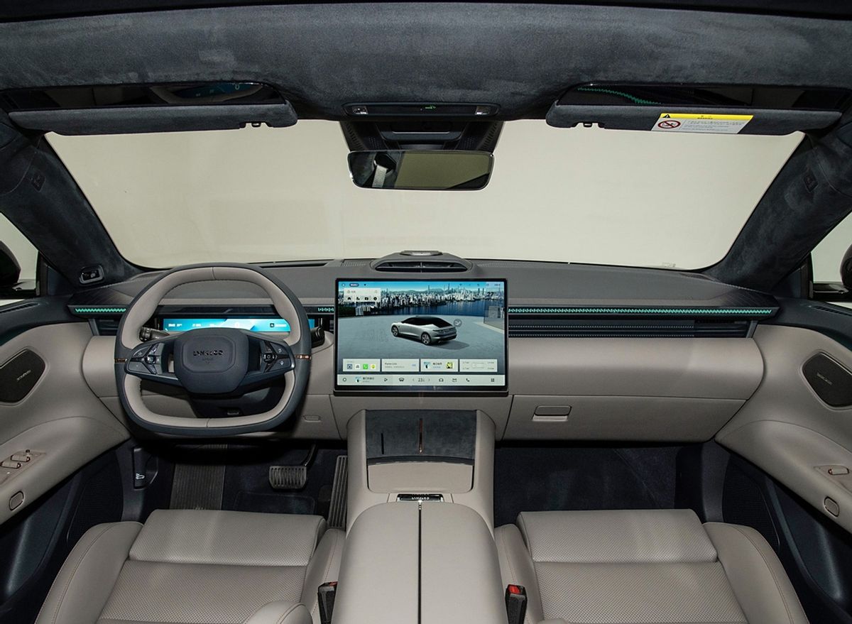 內飾方面,簡潔而不失典雅。懸浮式中控大屏、內嵌式液晶儀表以及前方 HUD 抬頭顯示模組,共同營造出極具未來感的駕駛環境。雖中控臺未配備實體按鍵,但領克 Z10 搭載的自研 E05 車機芯片算力高于高通驍龍 8295,且預計仍會搭載魅族 Flyme Auto 系統,車機表現令人期待。