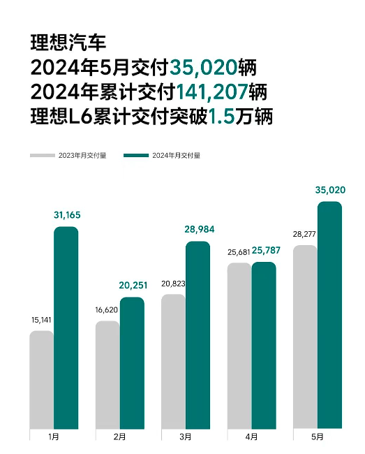 理想5月交付35020輛