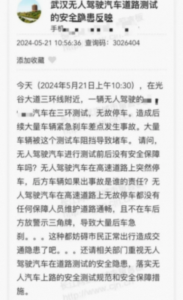 有媒體報道稱,在武漢街頭就出現了因為無人駕駛汽車行駛速度過慢,導致擁堵的情況。而受到影響的司機朋友,紛紛在網上發文吐槽,有的甚至直接跑到武漢政府的政務網站留言板進行投訴。