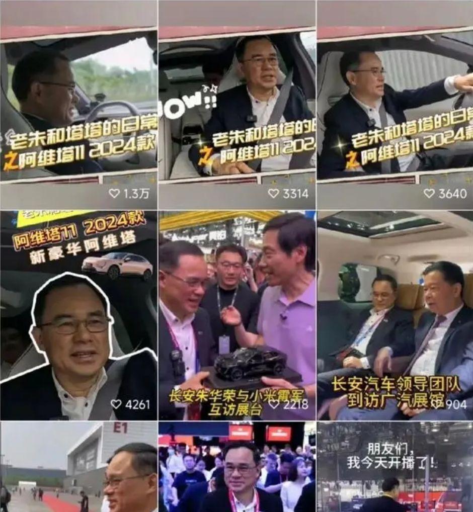 長(zhǎng)安汽車(chē)董事長(zhǎng)朱華榮的視頻號(hào)、抖音號(hào)已經(jīng)密集更新了十幾條小視頻,朱華榮親自出鏡、重點(diǎn)為長(zhǎng)安汽車(chē)阿維塔代言的小視頻。不夸張的說(shuō),這個(gè)做號(hào)的賣(mài)力程度和內(nèi)容更新頻率,遙遙領(lǐng)先于絕大多數(shù)傳統(tǒng)車(chē)企大廠的老板。