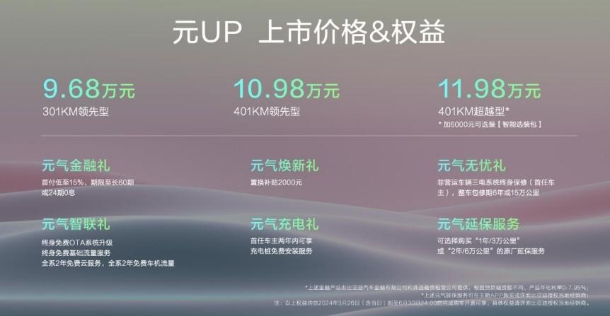 第二是元UP作為一款十萬級的小型SUV,它不僅起步就配備了3個安全氣囊、ESP車身穩定控制系統、哨兵模式、自動駐車、360度全景影像等功能,還擁有4個攝像頭、6個超聲波雷達、定速巡航以及遙控泊車等配置。再加上標配的對外放電、遠程啟動、車載ETC、熱泵空調,所以一般的寶媽或者是年輕人花10萬預算去買它,其實也已經是綽綽有余了,完全能夠滿足家用。