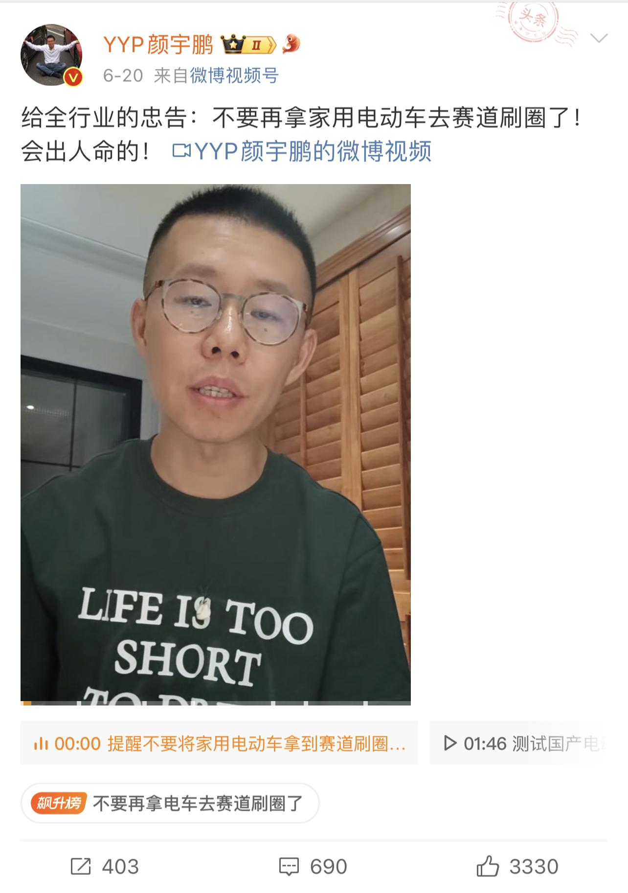 最近顏宇鵬老師 發了一條視頻,給全行業的忠告:說 不要再拿家用電動車去賽道刷圈了!會出人命的。 他說現在家用電動車,重量大,馬力強,尾速高,但是剎車系統完全跟不上。別看他們用了很大的卡鉗,剎車盤。但是剎車片的耐高溫做不好,在高速制動的時候,剎車片直接融化掉了。