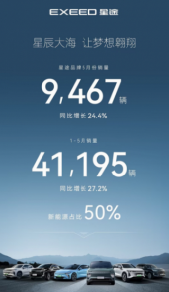 而事實上,從去年開始,星途就已經發出了反攻的信號,2023年全年累計銷量達到125,521輛,同比增長134.9%,超額完成8萬的既定目標。進入2024年后又在前五個月拿出了41195輛的成績單,同比增長27.2%。值得一說的是,星途在新能源方面的表現持續向好,隨著星紀元ET的到來,從五月的最新數據來看,目前新能源產品占比已超50%。