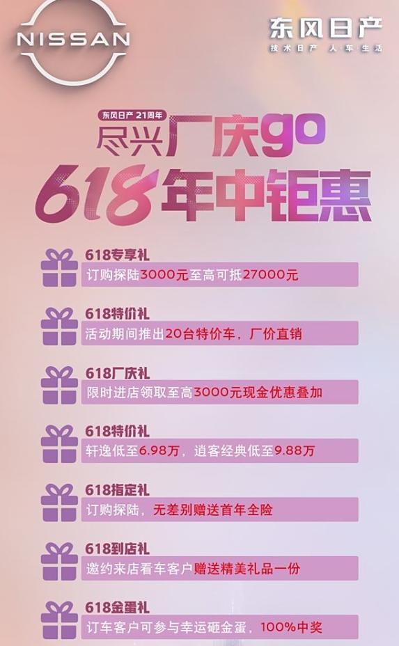 東風(fēng)日產(chǎn)也挺狠,面對(duì)新能源對(duì)手步步緊逼,針對(duì)618和東風(fēng)日產(chǎn)21周年兩個(gè)節(jié)點(diǎn),推出了一系列的優(yōu)惠,這其中,除了各種權(quán)益和好處,比較亮眼的兩個(gè)點(diǎn)是軒逸優(yōu)惠后的起步價(jià)達(dá)到6.98萬;逍客經(jīng)典優(yōu)惠后的起售價(jià)達(dá)到9.88萬。鬼哥電話采訪了東風(fēng)日產(chǎn)經(jīng)銷商,該兩款車型可以享受這樣的優(yōu)惠,但這是裸車價(jià),而且,優(yōu)惠有時(shí)間限制,屬于限時(shí)優(yōu)惠。