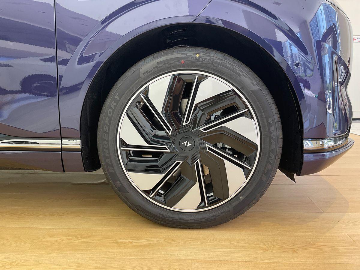 輪轂采用六幅的造型,能看到低風(fēng)阻的元素。輪胎尺寸挺大,規(guī)格為265/45 R21。