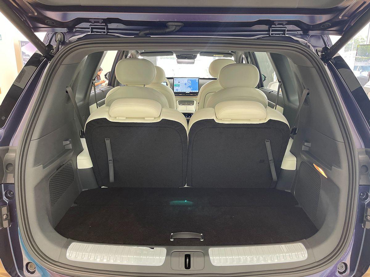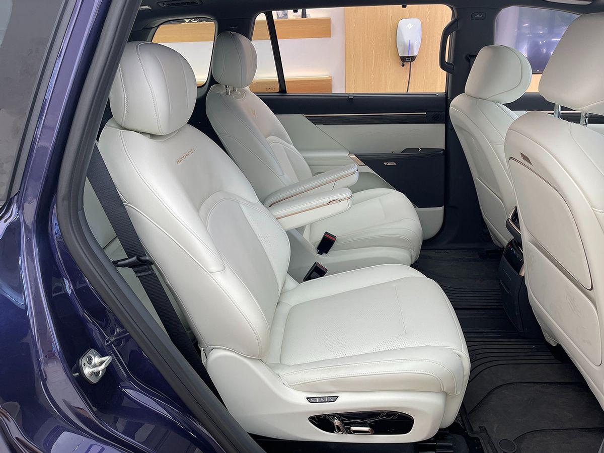座椅全系都是仿皮材料,前排座椅支持電動(dòng)調(diào)節(jié)、加熱和通風(fēng)。整車采用2+2+2的六座布局,第二排為獨(dú)立座椅,支持前后調(diào)節(jié)、加熱、通風(fēng)和腿托調(diào)節(jié),還可選裝后排小桌板。
