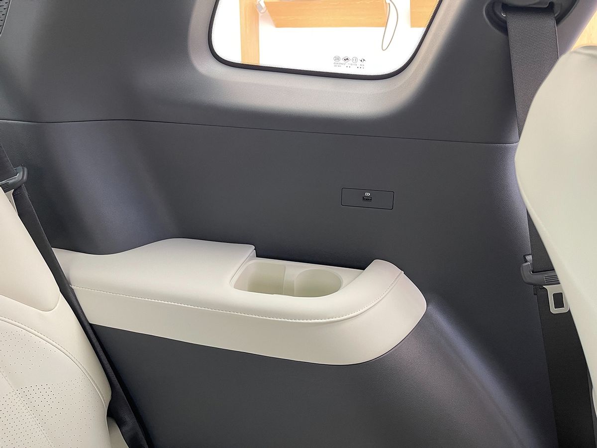 第三排側(cè)面設(shè)置了杯架和充電接口。