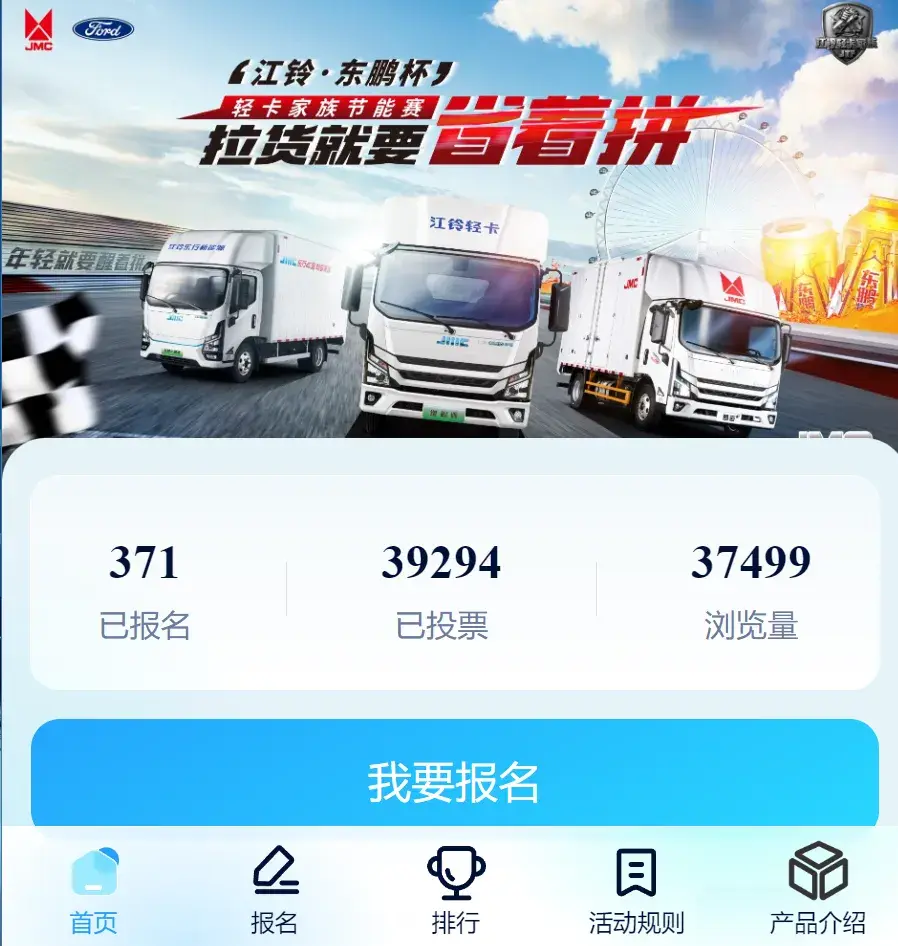 據了解,江鈴·東鵬杯輕卡家族節能大賽共有三個賽程,分別為門店海選、復賽、總決賽,其中海選階段為6月15日-7月7日,而大區賽和總決賽的時間還有待公布。轱轆哥獲悉,江鈴輕卡用戶只要成功報名就能到指定門店免費領取東鵬特飲,最終還有機會拿到萬元大獎!