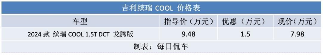 所以,我在物色了十幾種市面上了車型后,決定給這批小年輕,推薦:吉利繽瑞,一款針對這部分“有為青年”推出的運動轎跑車,今年的新款繽瑞COOL龍騰版指導價為9.48萬,廠家直接給出了1.5萬元的現金優惠,裸車價僅7.98萬。有些人家里有舊車,現在企政補貼至高可達11000元置換補貼,繽瑞COOL4000元置換補貼,國家補貼7000元,就更劃算了。家里沒有舊車也沒關系,合理利用金融政策來減輕購車壓力也是聰明之舉,可以選擇零利息貸款,如2年貸5萬0利息,最高貼息5000元,或者低月供,首年月付833元,擁車1年后再結尾款或繼續3年月付,總之可以讓年輕人購車無壓力(活動詳情請咨詢當地經銷商)。近期,我們對繽瑞COOL龍騰版進行了實拍,來看看它的具體表現。